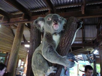 しかし、昔シドニーでコアラ抱っこしたときは爪が危ないからと、縫ぐるみにだきついたコアラを抱いて写真を撮りましたが、ここはそのままでした。なお、今はシドニーでは法律でコアラ抱っこは禁止で、見るだけのようです。コアラとの写真1枚19$は高いですが、オーストラリアの1番の記念にはなります。