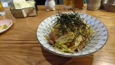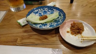 お通しのキャベツは肉味噌につけて食べると酒が何杯でもいけます。