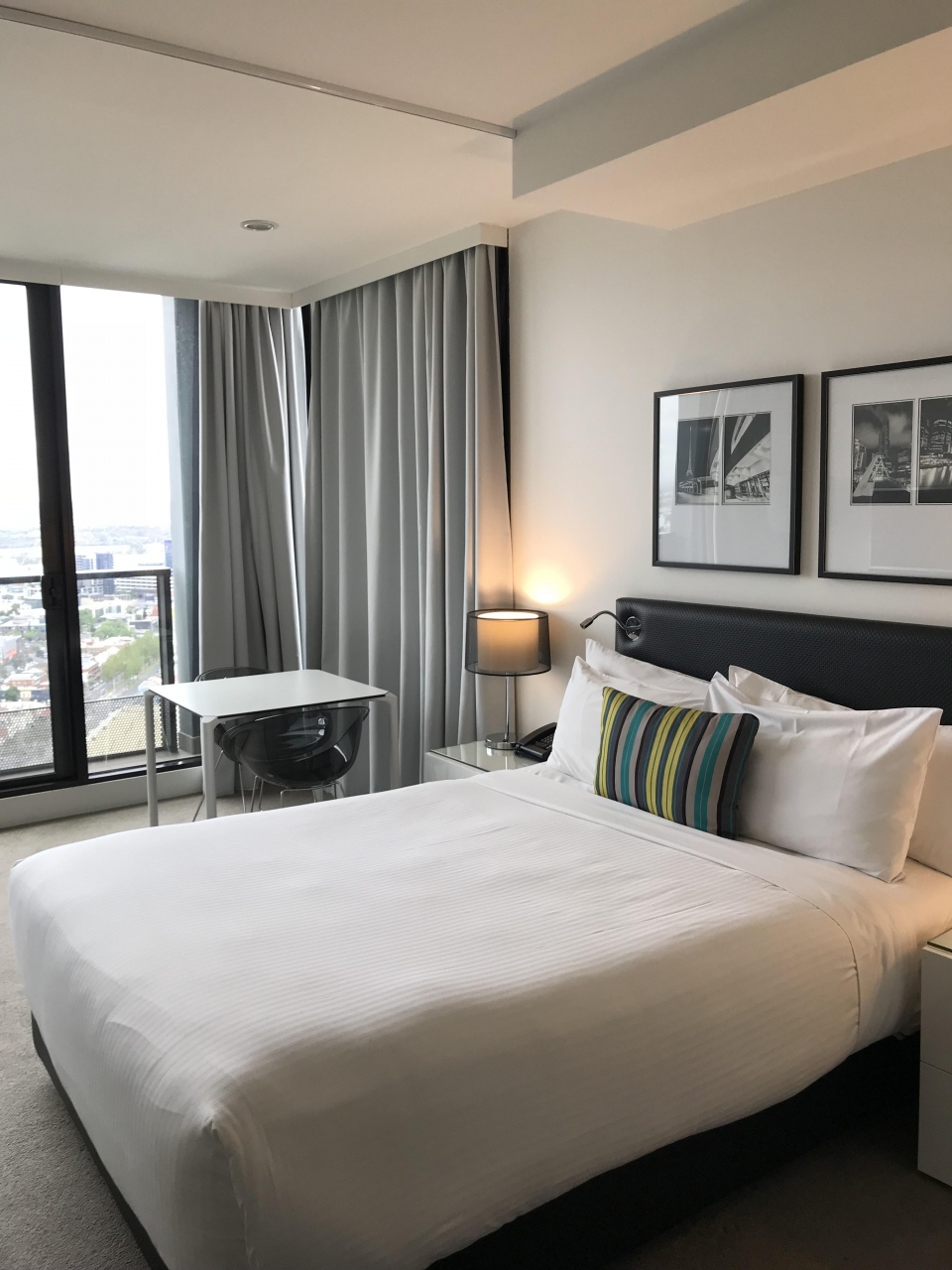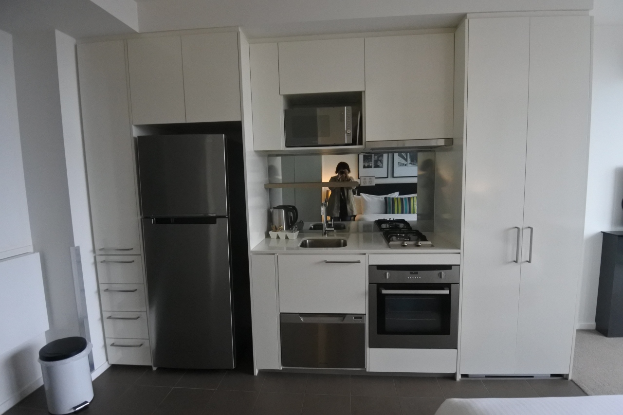 クイーンヴィクトリアマーケットのほぼ目の前にあり、シティの中心地までも余裕の徒歩圏内。シティビューの部屋からの眺めは街を一望出来ます。キッチン完備のアパートメントタイプですが、それだけでなく洗濯機・乾燥機・アイロンとアイロン台まで何から何まで揃っています。そして新しく清潔なので快適に過ごすことが出来ました。料金もそれほど高くなくコスト的にも大満足のホテルでした。