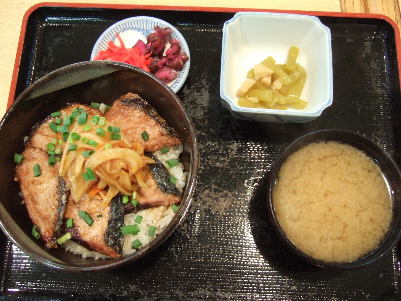 近海物のカツオの切り身に片栗粉をまぶし油で揚げ、味付けをした玉葱スライスと人参をトッピングした地域特産メニュー。