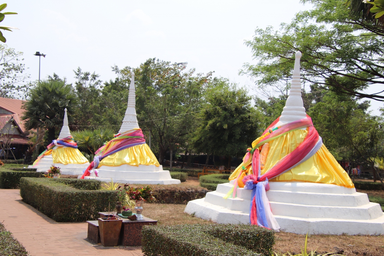 小さいが3つ並んだパゴダはタイ人からも人気でみんな写真を撮っていた。近くには地政学的に現在は封鎖されているがミャンマーとの国境がある。他にも旧泰緬鉄道の名残もあってこの場所は意外と見どころはある。以前は食堂があったが国境を越えられない以上、店を開けていても客は来ないらしく閉店していた。お土産屋さんは開いているが閑散としている。パゴダ周辺は見た目的には緊張感はなかった。- 旅行時期