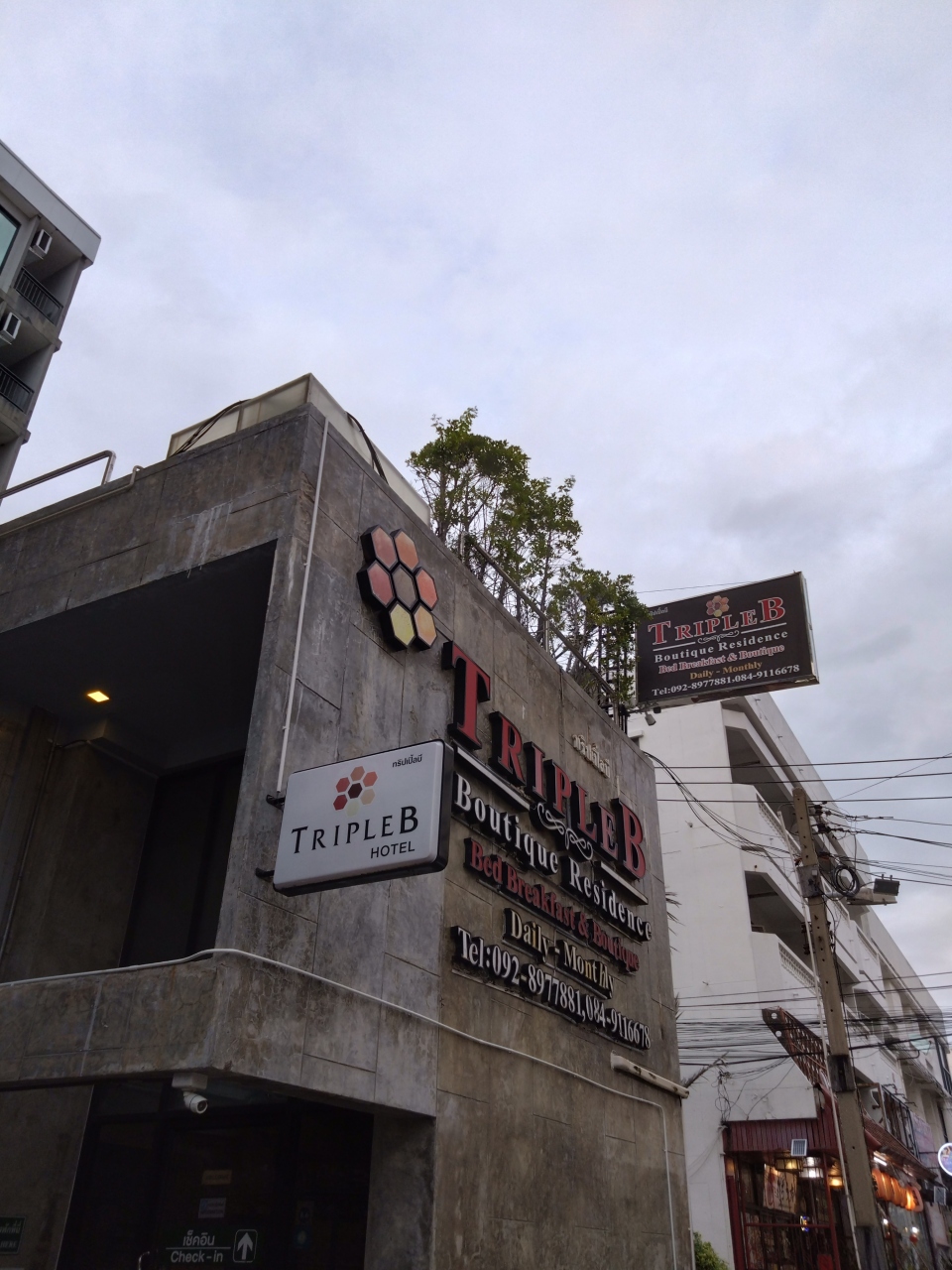 BTSベーリング駅から徒歩10分ちょっと。途中、地元感満載の住宅街の中を通るので本当にあっているか不安になる。ホテルからは主要な行き先(駅やコンビニ等)は方面別に矢印が書いてあるので問題ない。何度か通っていれば覚えられるが初見はやや苦労するかも。