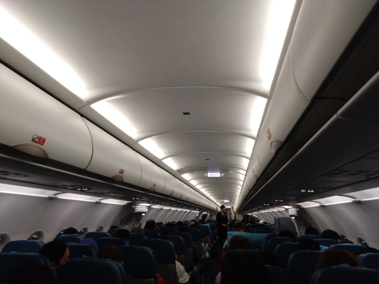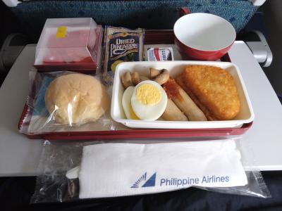 バンコク・スワンナプーム空港からマニラ経由で成田に着く便に搭乗。バンコク~マニラ便には古い機材が使われていて座席もLCCのような使いまわした感があり綺麗ではなかった。当然個人モニターなんぞはなし。