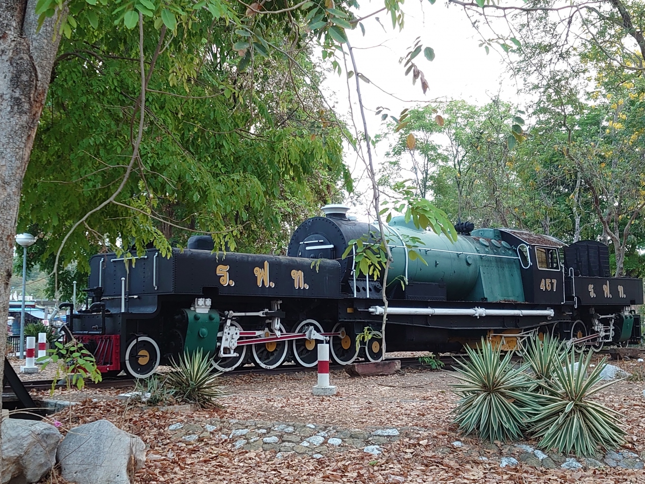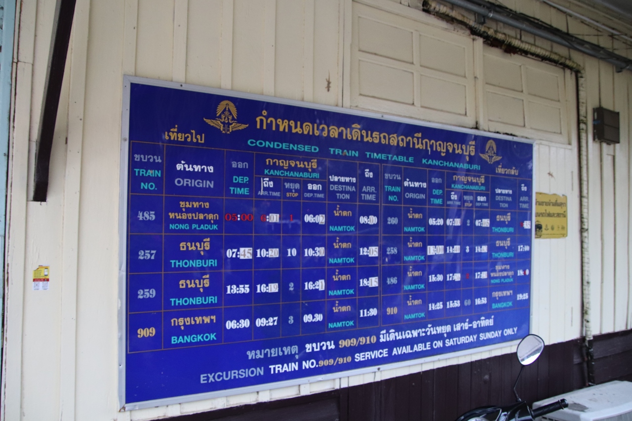 ここからソンテウ(50B)で「サイヨークノイ滝」まで行くと、今は使われていないナムトックノイ駅がある。旧泰緬鉄道の姿を思い起こさせる古い汽車などもある。またちょっとした滝も見られる。3月に行ったので水量はさほどなかったが、雨季には滝らしい姿が見られるとのこと。時間がある方はぜひここまで足を延ばしてみるのをお勧めします。- 旅行時期