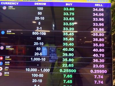到着エリアにも両替所はいくつもあるがレートが良いのはエアポートレールリンクがある地下奥にある両替所。数十年にわたり使っているが空港内でのレートの良さは一番。注意したいのがこのARL入り口にあるお店は到着エリアにある店舗と変わらないので、切符売り場の奥に、荷物預かり屋さんと並んでいる店舗(リッチ系)をおすすめします。ちなみにARL入り口にある店舗との比較、1万円で200Bくらい違いました