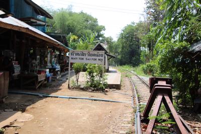 タイ国鉄の現在の終点がここ、ナムトック駅。駅前にはカフェや麺類などの食事がとれる食堂、雑貨屋(スナック菓子は高い!)などがあり観光客もそれほどいなくて静かな終着駅になっている。