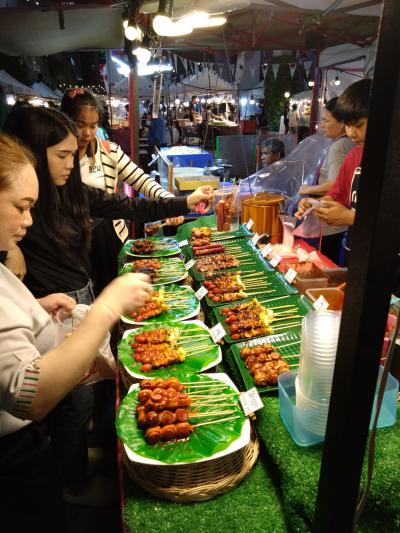 バンコクからバスでシーラチャに来るとだいたいロビンソンの前でおろしてくれる。街の中心にあるので便利。夕方から夜にかけては焼き鳥や唐揚げ、シェークなどの屋台がずらっと並ぶ。簡易的なテーブルとイス(もちろん綺麗ではない)がいくつかあるのでそこで食べることもできる。