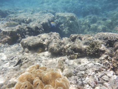 海の様子。ビーチ近くは岩だらけだが、浅瀬がしばらく続き、少し沖のほうに行くとサンゴがちらほら出てくる形状。本島にもこんな場所があることに感動。ウミガメも見えました。あまり混雑はしていなかったので穴場的な場所としておすすめです- 旅行時期