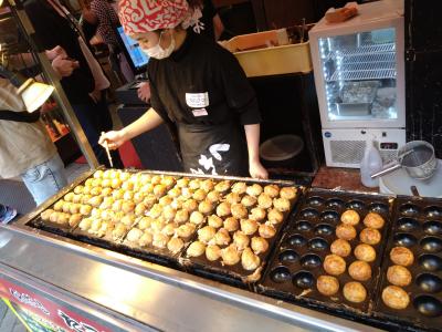 3月の土曜日昼過ぎに訪問。とにかくすごい人だかり。観光客だけでなく地元大阪の人たちも多い印象。どこのたこ焼き屋さんにも行列があって、特に人気店のたこ焼きを食べるなら相当な覚悟を持って並ぶ必要がある。ひとだかりとたこ焼き店を間近で見ると大阪にいるなぁということを感じられます