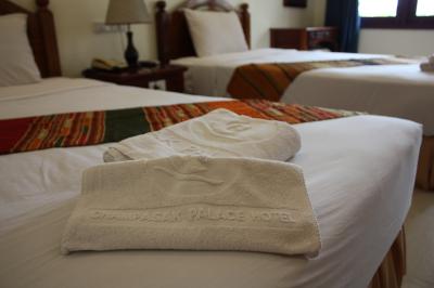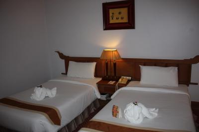 予約サイトで一番安いプランで予約したら二階建て?の別館を案内された。見た感じも白を基調として新しいし、実際部屋に入ってもシンプルで真新しく綺麗で居心地はよかった。ホテルから5分もかからないところにレストランはあるし頑張って歩けば国境行きバス乗り場のタラートまで歩いていける距離なので特段不便は感じなかった。