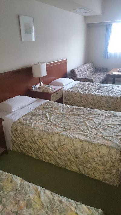 部屋は3ベッドでL字型の作り。不思議な感じだがこれも沖縄スタイル(?)で良し。狭さは感じない。