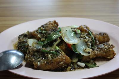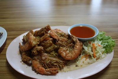 オーダーしたのはエビのから揚げと白身(名前忘れた)魚の香草焼き。エビも大きくて数も入っている。ただ二皿とも油っこくて一人だと食べきれなかった。値段は高めなので数人で来てシェアするならいいかも。一人なら他にもたくさんシーフード店はあるので・・・- 旅行時期