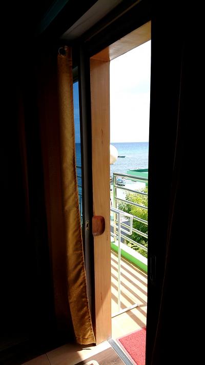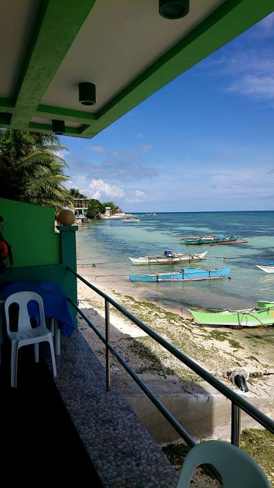 オスロブ市内もゆっくり見たかったためチョイス。一泊1600Pで二階に宿泊。部屋から海は見えないが、廊下に出ればオーシャンビュー。波の音聞きながら眠れる。敷地内から階段5段程降りればすぐ海!の抜群の立地。建物自体新しく清潔。部屋の中はシンプルでダブルベッドにエアコン(付けっぱなしで外出OK)。石鹸しかないのでシャンプー&歯磨きセットは要持参。まぁバス停近くにセブンがあるので現地で買える。