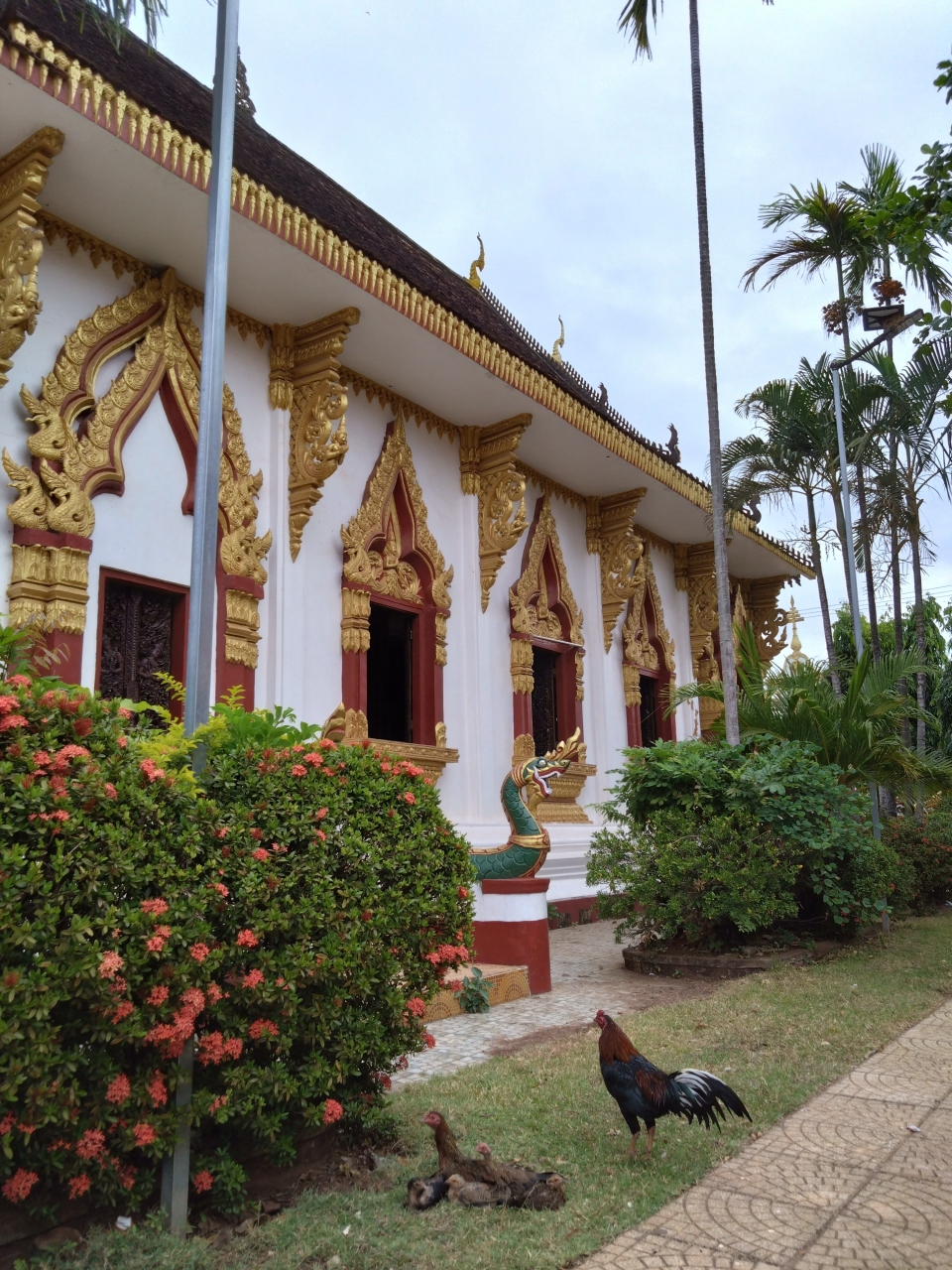 パクセの中心エリアから程近くにある。ワットの入り口付近にはパクセ市内の観光名所が載った大きな地図がありわかりやすい。敷地に入ると鶏がのんびりと歩き回っていたり、見ているだけでゆったりとした気持ちになれる。これといった特徴はないが混むこともないので気軽にお参りができる