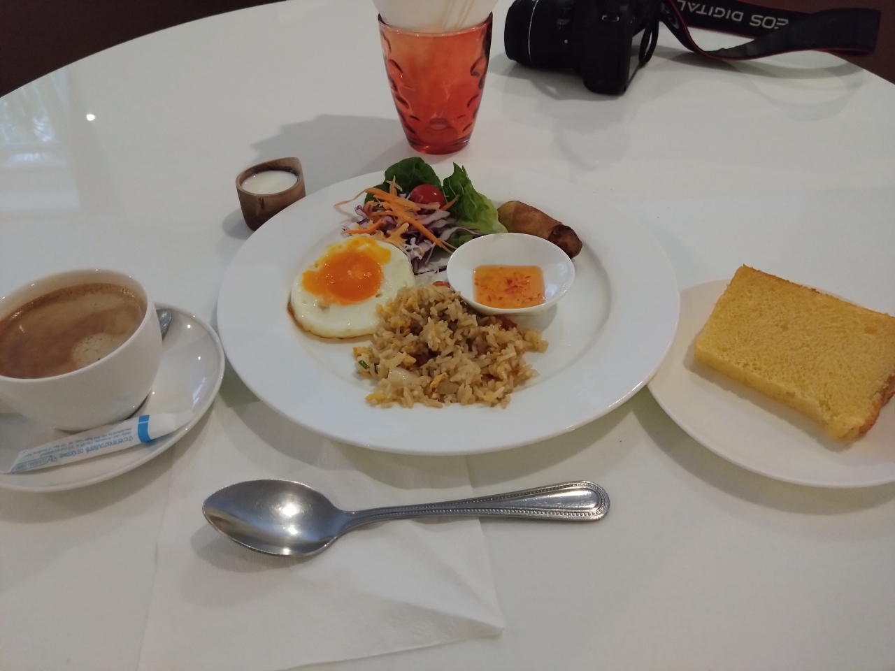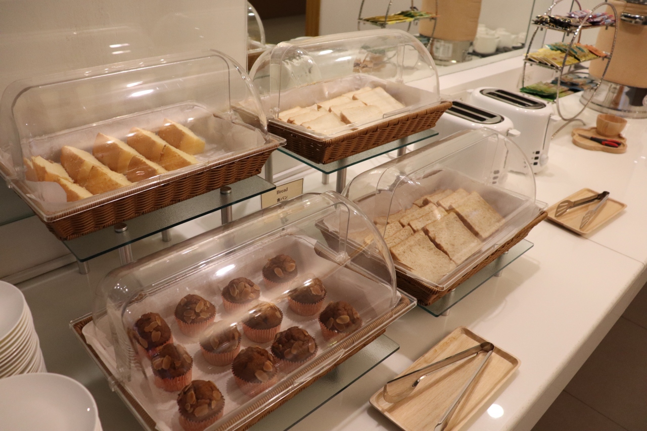 朝食はガラス越しに中庭にあるプールが見える場所でいただいた。種類も豊富でテーブルも数多くあるのでゆったり食べられる。