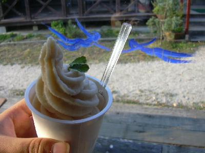 • 喉が潤うさっぱり味の桃ソフト♪ 果樹園