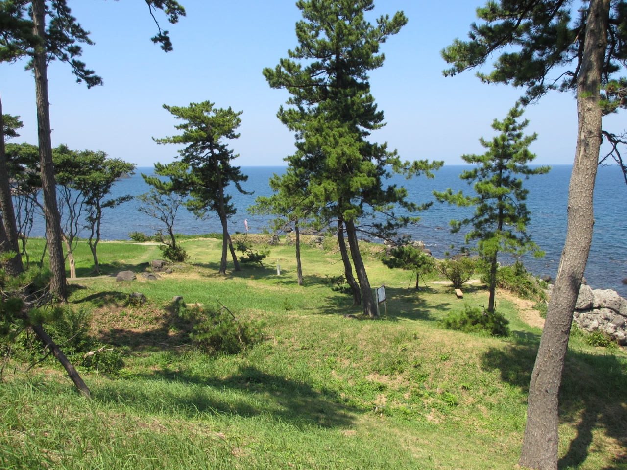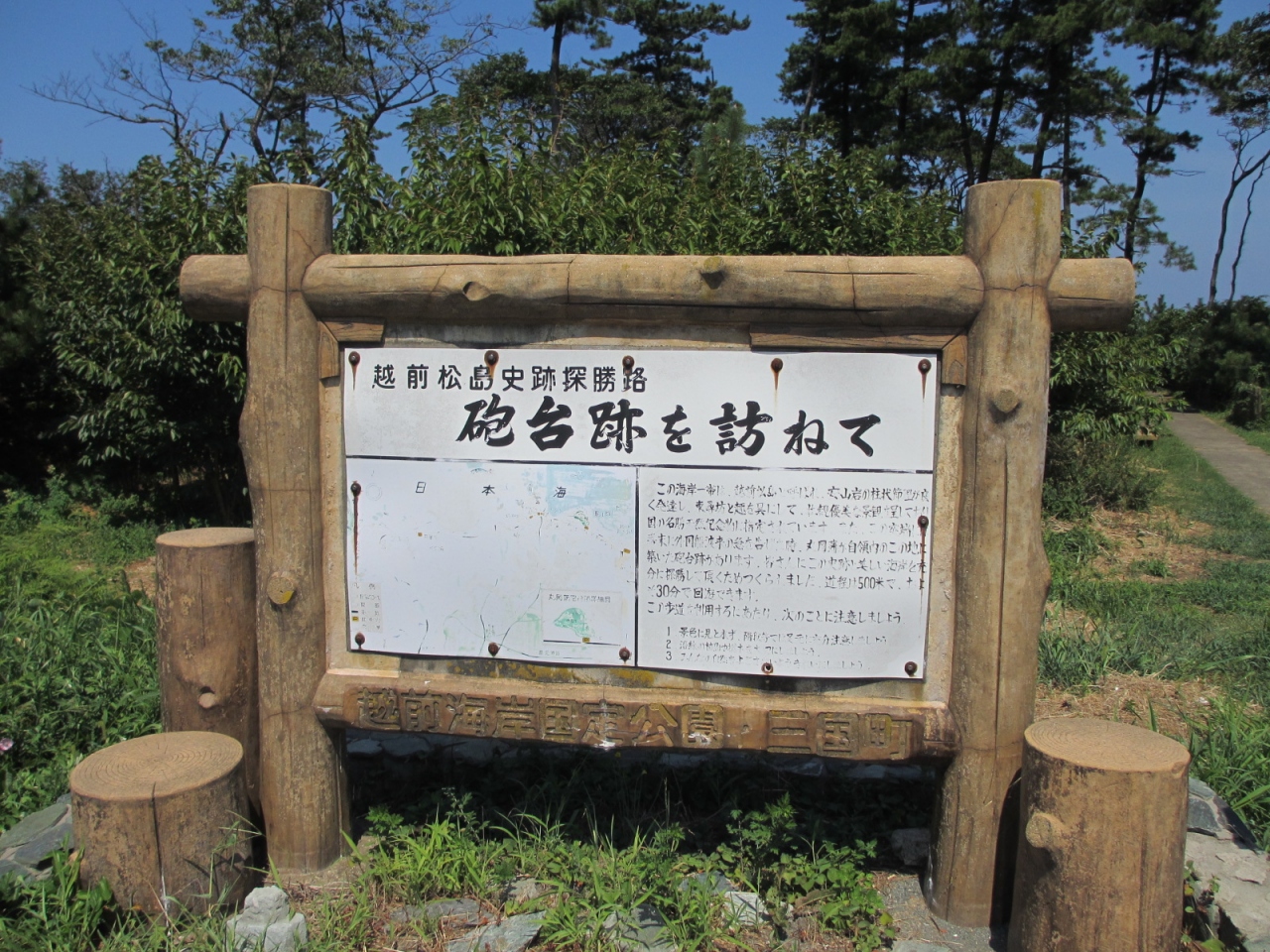 丸岡藩砲台は1852年沿岸を警備するため丸岡藩によって建設された。海上へ突き出した海岸線上に弓状に築かれた高さ1.8mの土塁には5個の砲眼が4.5メートル間隔で設けられている。原形をこれだけ良く留める砲台跡は全国的にも貴重であり、丸岡藩砲台跡は東京の品川台場などと共に国指定史跡となっている。