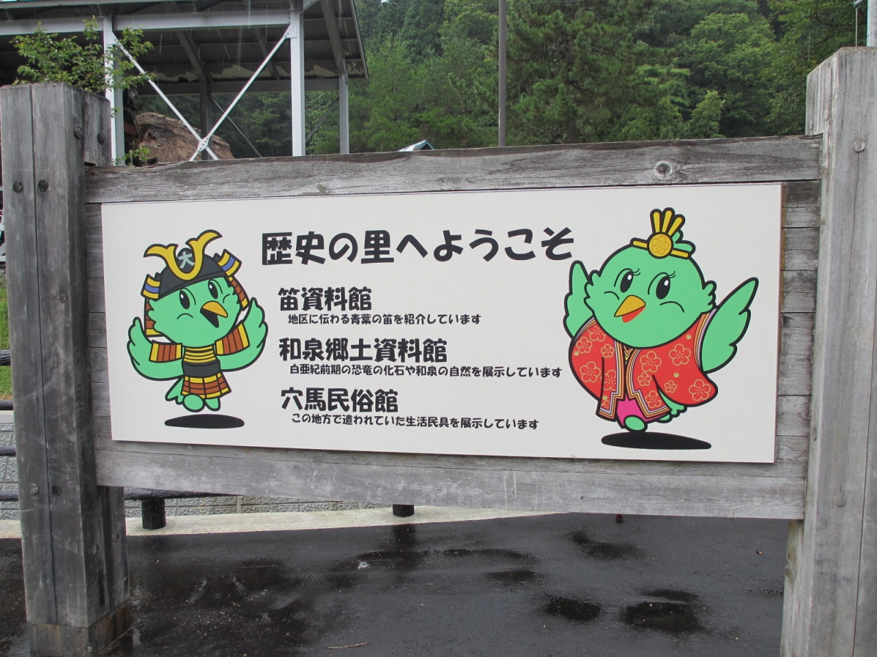 和泉郷土資料館では、和泉地区や近隣市町村で発見された世界最古級のティラノサウルス科の歯、日本最古の鳥の足跡、世界で唯一発見されたトカゲなど、世界から関心を集める化石や、当地がかつては海中であったことを示すアンモナイトやウミユリの化石をはじめ、植物標本や全国の代表的な鉱石を展示しています。
