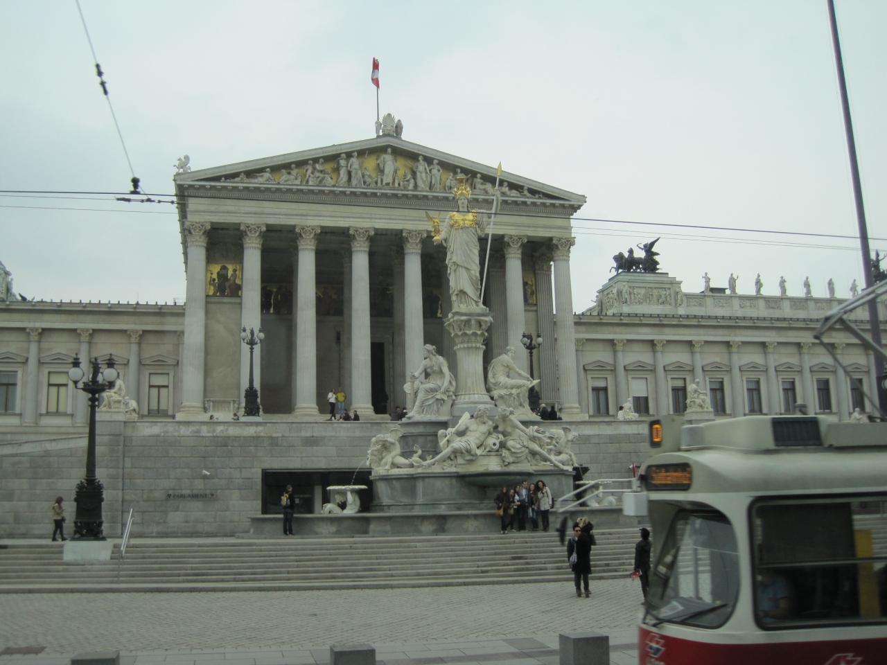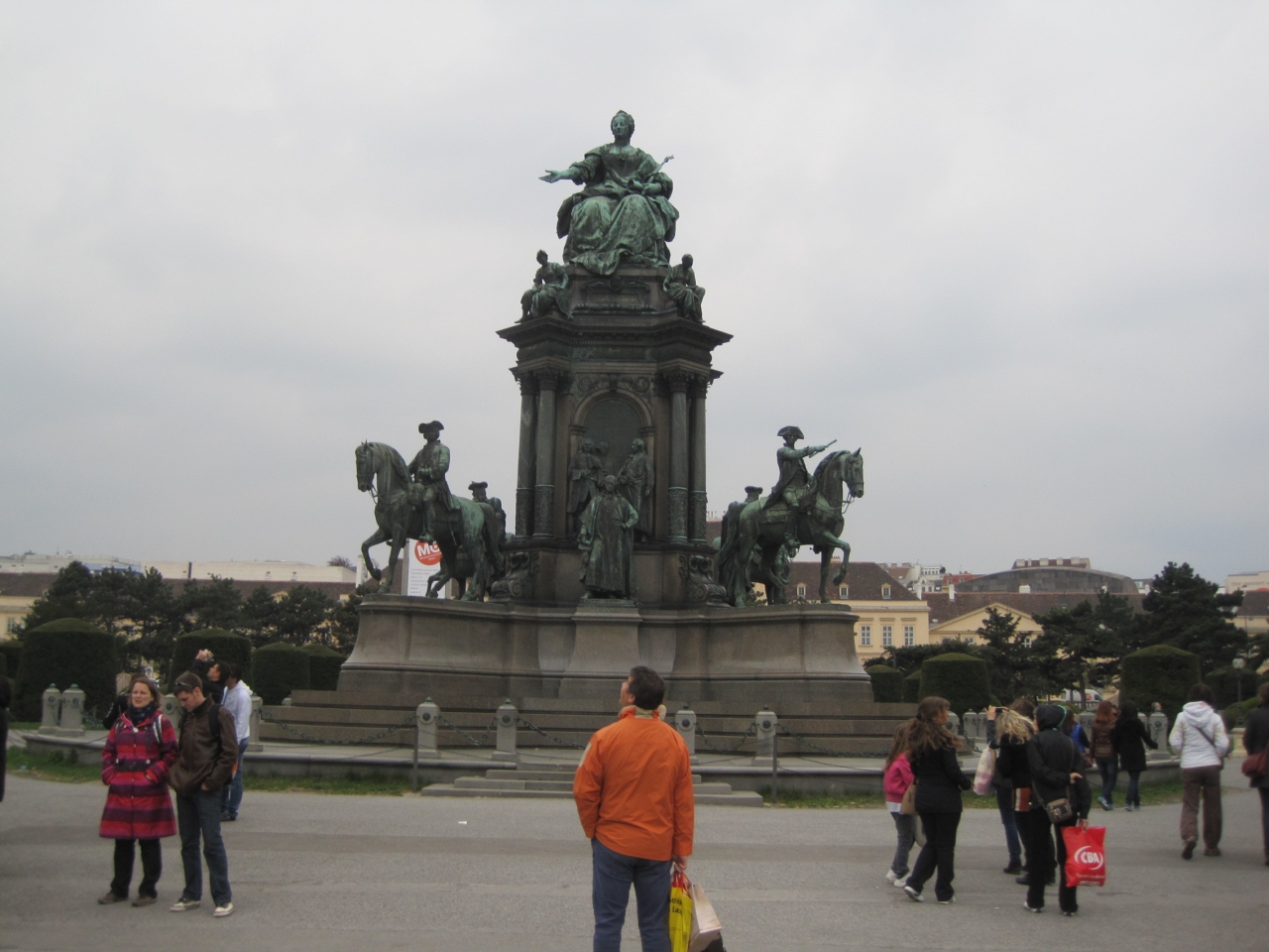 広場中央には女帝マリア・テレシアの像が立ち、側面には女帝の前で御前演奏を行った幼いモーツァルトの姿も見られます。