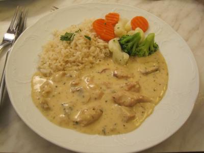 白身魚のフライ、チキンの煮込み?、サラダ、デザートを頂きましたが、