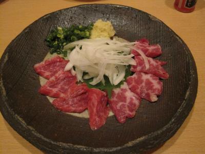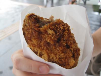 できたてアツアツの馬肉メンチカツ、なかなか美味しかったです。