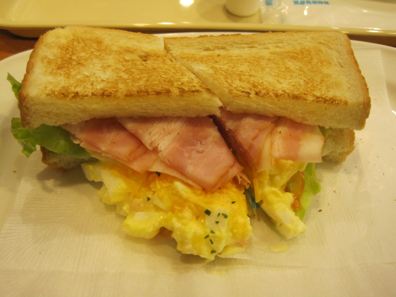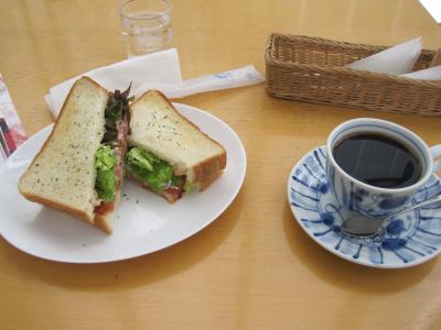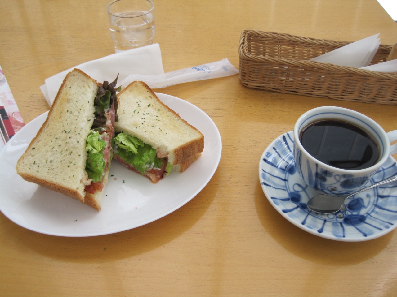 この時はスライストマトとレタスを挟んだサンドイッチとコーヒーを頂きました。