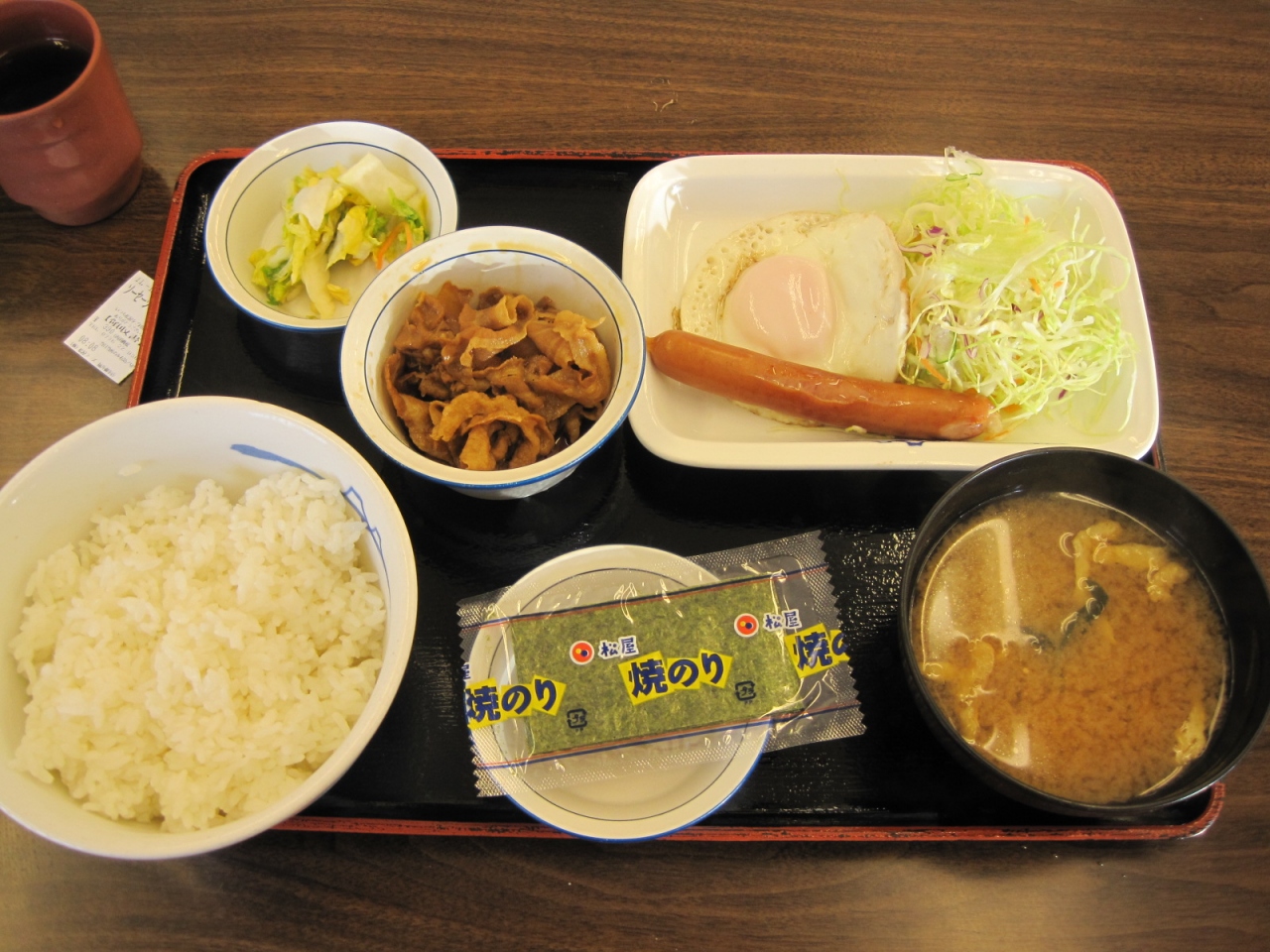 全国チェーンの牛丼屋ですが、5時から11時までは朝定食が食べられます。