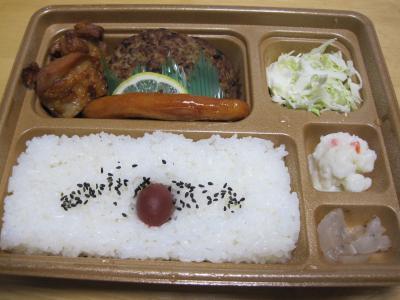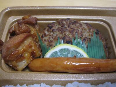 このときは唐揚げ、ハンバーグ、ウインナーが入ったお弁当を食べましたが、