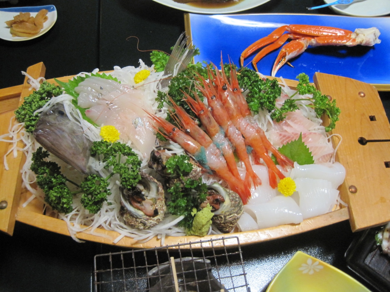 カニのオフシーズンでも十分に美味しい海の幸が、これでもか!というほどテーブルに並びますよ。