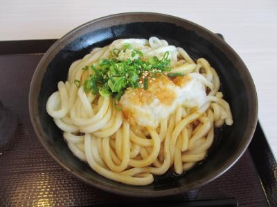 温かいうどんに大根おろし、ネギ、きじょうゆをかけて頂きました。