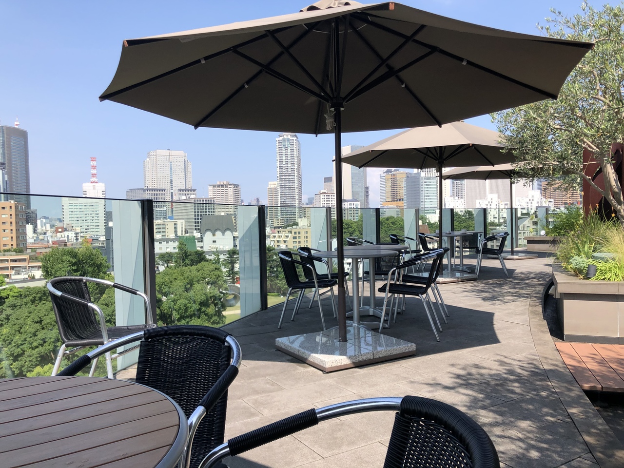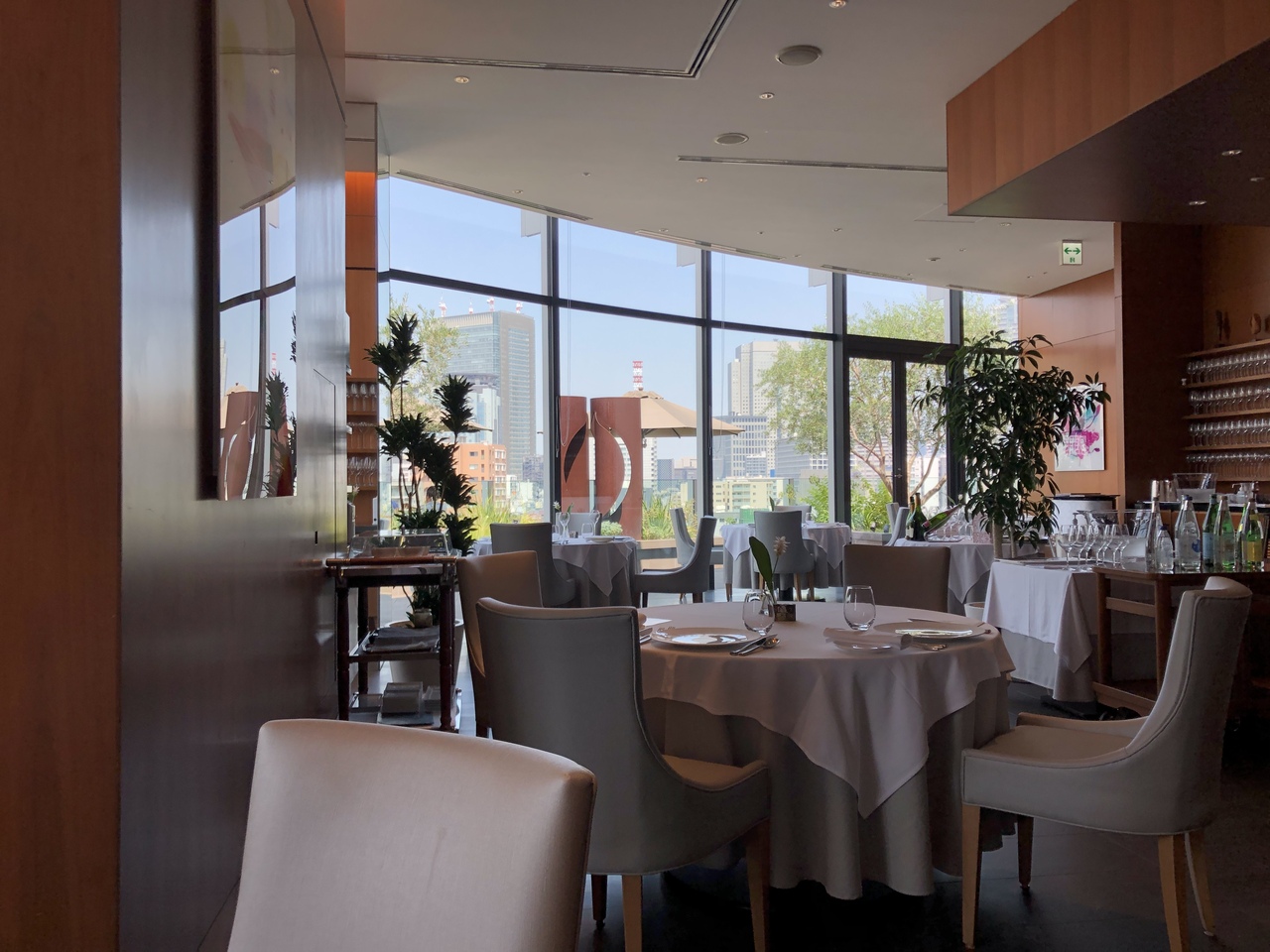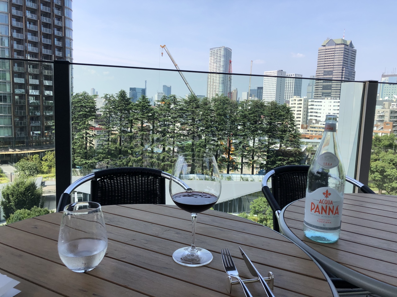 室内はフレンチレストランらしい豪華さがありますが、一歩テラスに出れば都会のオアシス的な世界が広がります。