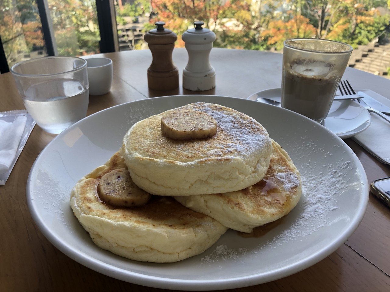 リコッタパンケーキはふんわりもっちりして美味しいですが、三枚はさすがに重かった(笑)