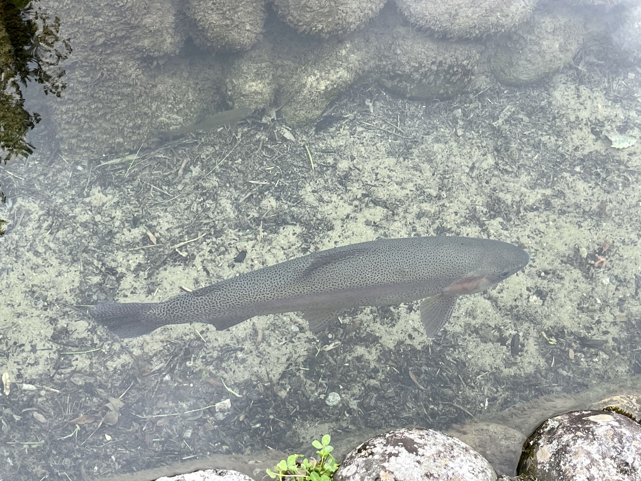 集落内を流れる小川にはびっくりするほど大きなニジマスが沢山!