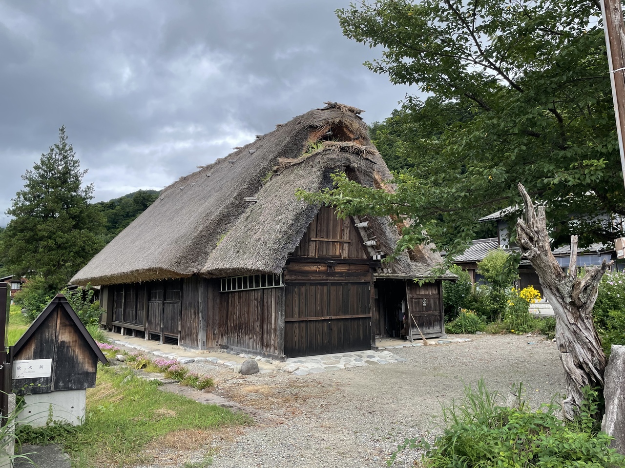 長閑な田園風景のなかに点在する合掌造りの家屋は、小さい頃にTVでみた日本昔話を思い出します。