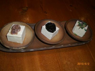 島豆腐の三点盛り。ほんとうは前菜みたいで珍味三種が乗ってるものでしたが...