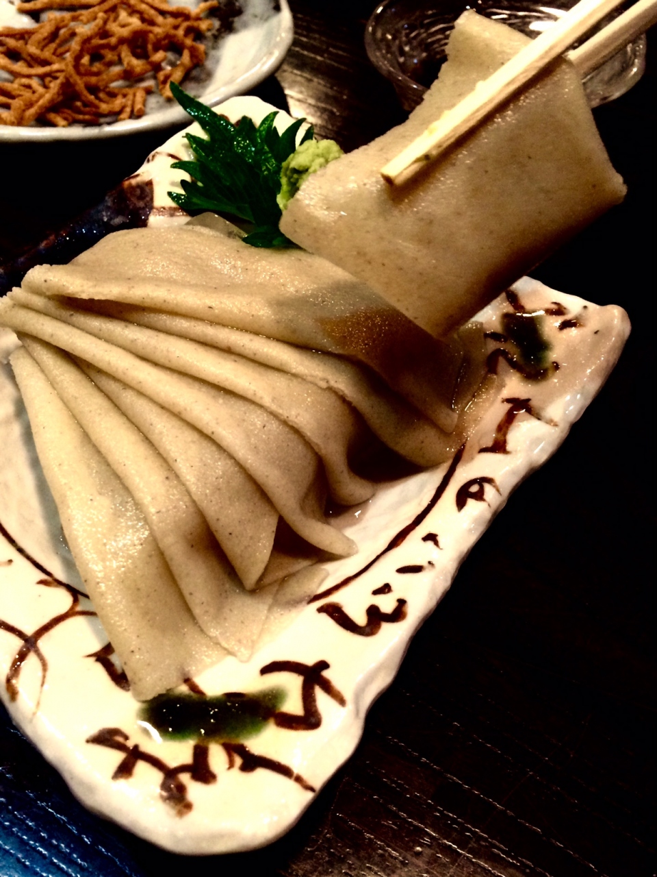 基本的に連れていただいたのですが、蕎麦の刺身がオススメとのことで注文したらびっくりです。