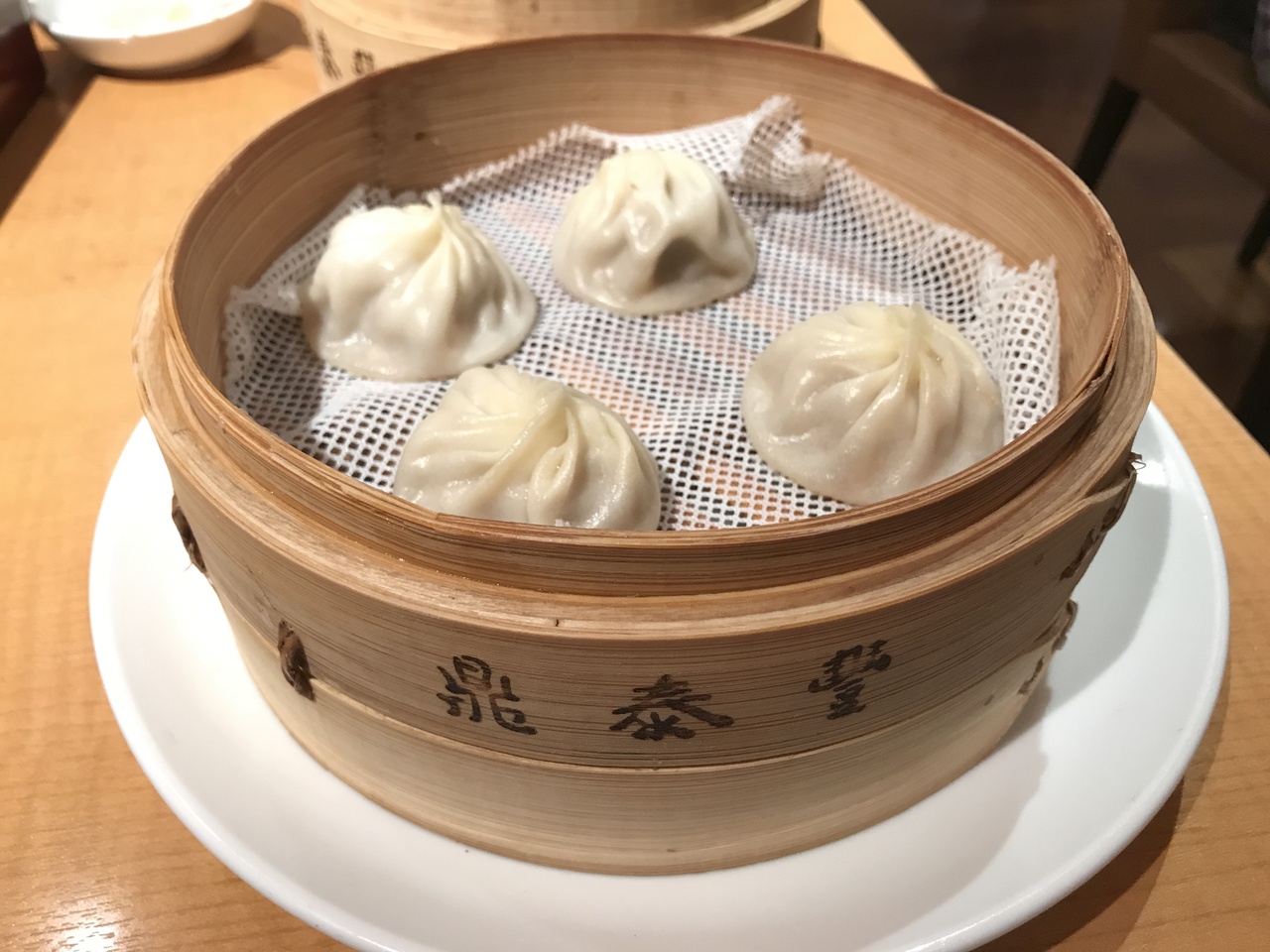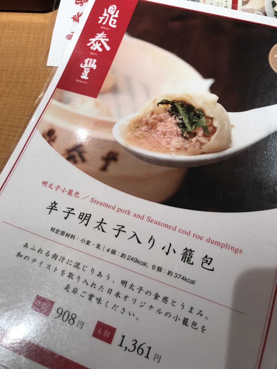 台湾でも有名な小籠包4個+坦々麺のセット約1500円、小籠包+エビ麺のセット約1700円を注文しました。