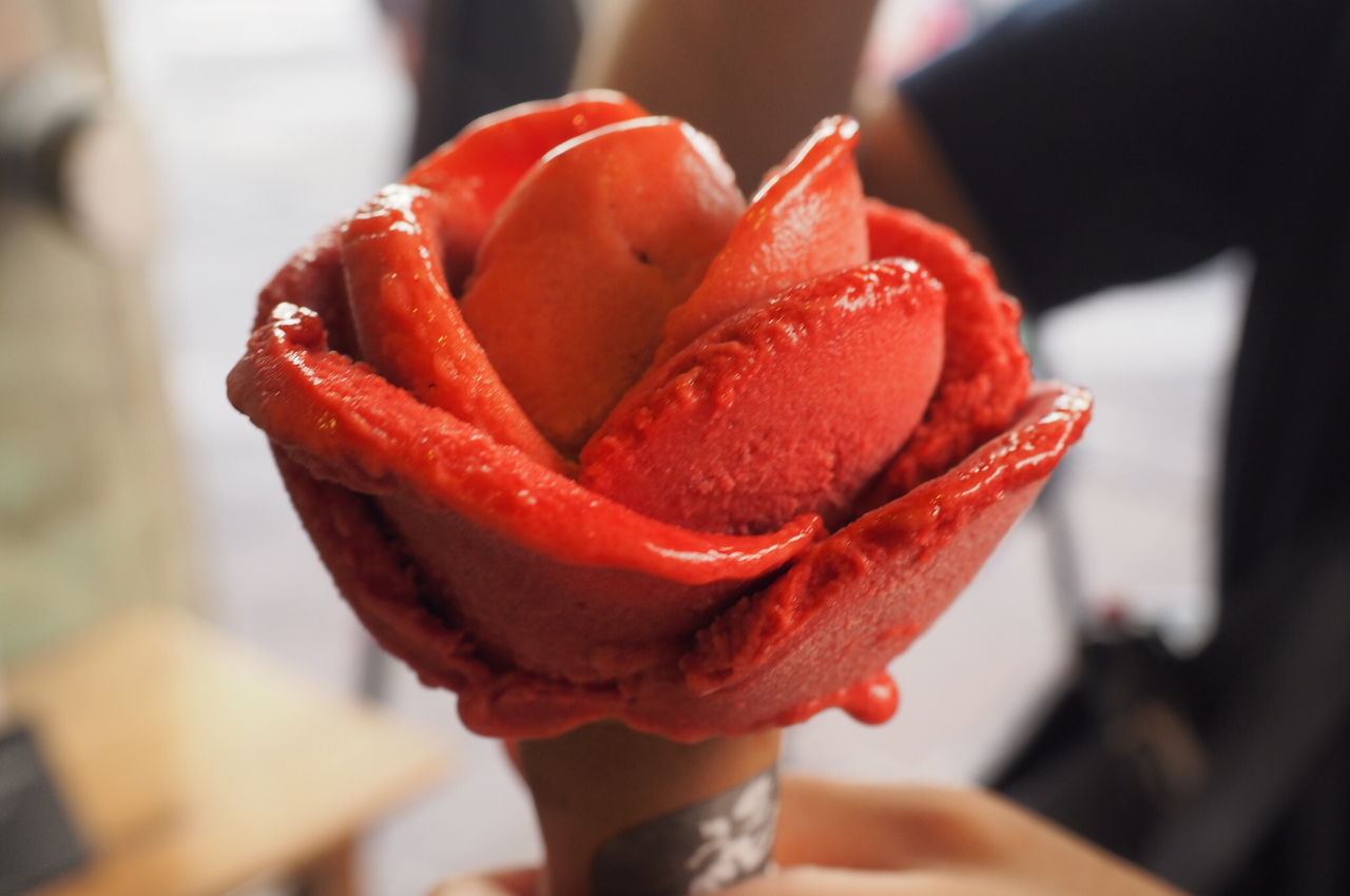 ヨーロッパで人気チェーン店。ジェラートの種類が豊富でコーンだと花びらの形に盛り付けてくれます。