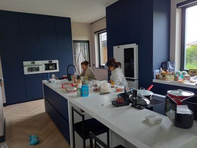 キッチン。我が家の広さと違うので使い勝手が違いました。家内は日本から持...