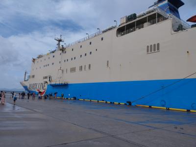 本部港からマリックスラインに乗ります。夏の海をクルーズ、二等船室でもわ...