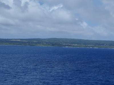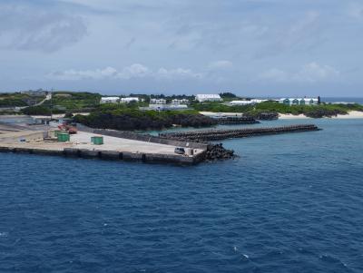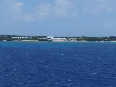沖永良部島が見えてきました。ずっとデッキで景色を見ていたので、、二等船...