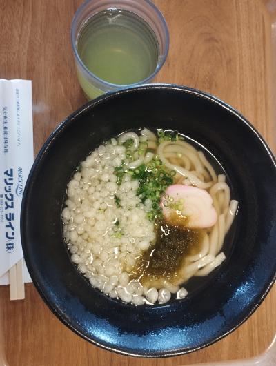 与論港停泊中におうどんの昼食です。本当は鶏飯が食べたかったのですが、売...