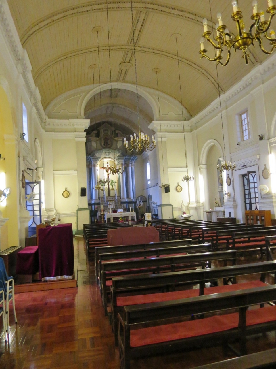 聖ローレンスを描いたステンドグラスやターコイズブルーの天井が美しく、なんでも、マカオでもっともお洒落な教会、と言われているそうです。お洒落かどうかは別にして、とても上品で、落ち着いた雰囲気のある教会だと思います。