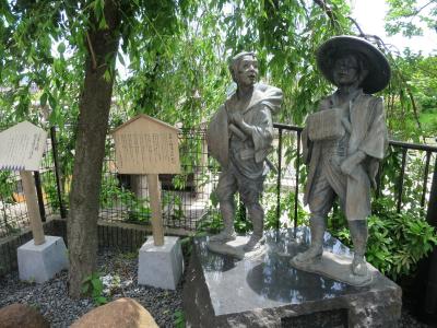 三条大橋の側、鴨川沿いにある、東海道中膝栗毛の弥次さん、喜多さんの像です。なぜ、ここにあるのかな、と考えたのですが、そうか、東海道中膝栗毛におけるこの二人の目的地はここですものね。なんとなく、ほっこりした気分になりました。
