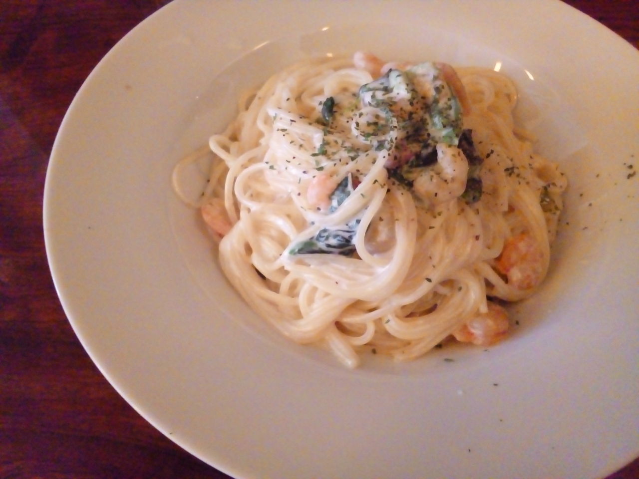 神田駅西口から歩いて数分のところにあります。神田には似合わない(というと失礼ですが)、お洒落で雰囲気のあるイタリアンです。ランチメニューは、各種パスタ、ピザ、リゾットにサラダと飲み物がついて1000円を切る値段で食べられ、お得感があります。