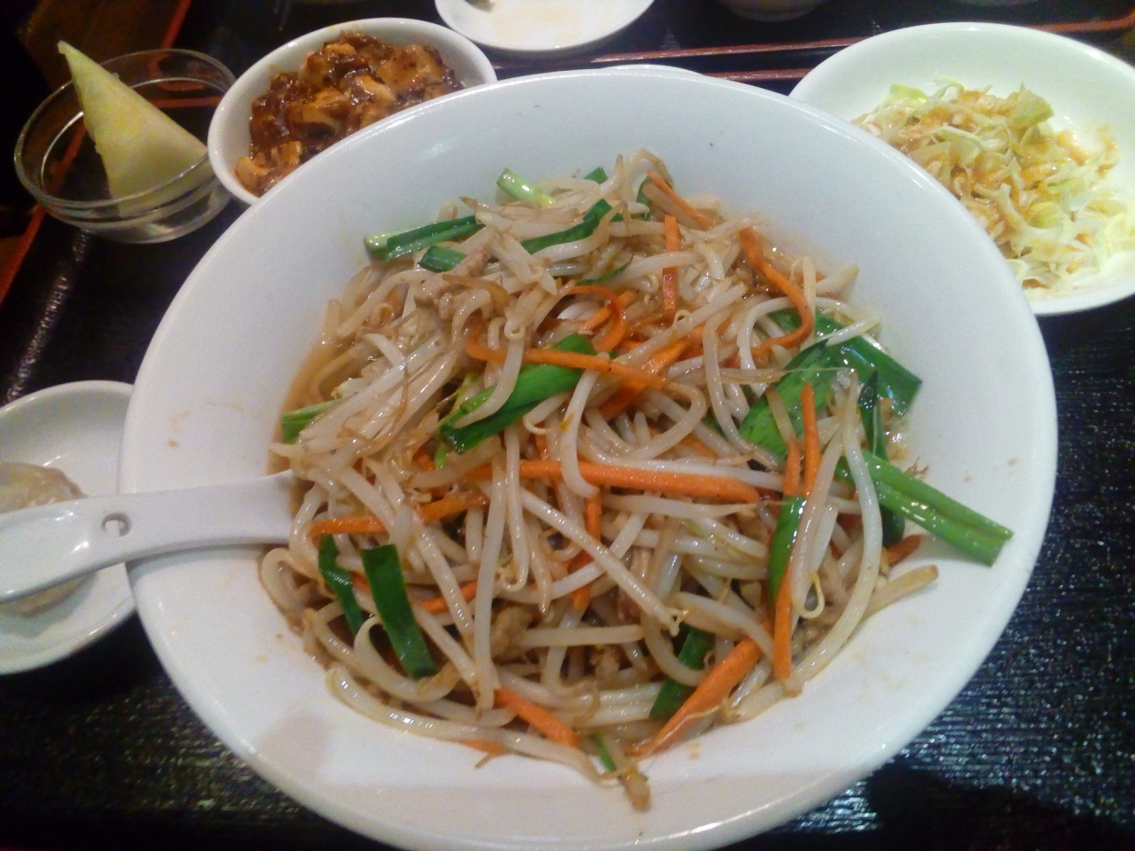神保町駅から歩いてすぐのところにあります。あたりは出版社や古書店がいっぱいです。定食を頼むと、食べ放題のおかずや杏仁豆腐もいただくことができ、お腹は簡単に一杯になります。お味も満足できるもので、いいランチになりました。