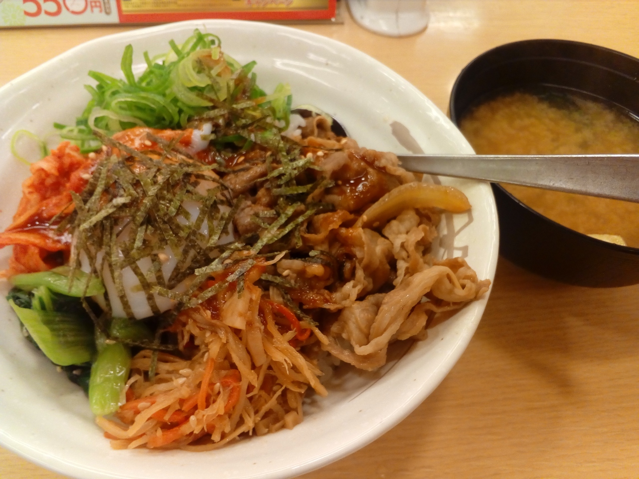 神田西口商店街の外れにある松屋です。夕食の時間にいったのですが、結構空いていて、さくっとビビン丼を野菜サラダつきでいただきました。安上がりで、定食メニューを、短時間でいただけるというのは、やはり便利です。そういえば、最近牛丼は食べてないなあ。