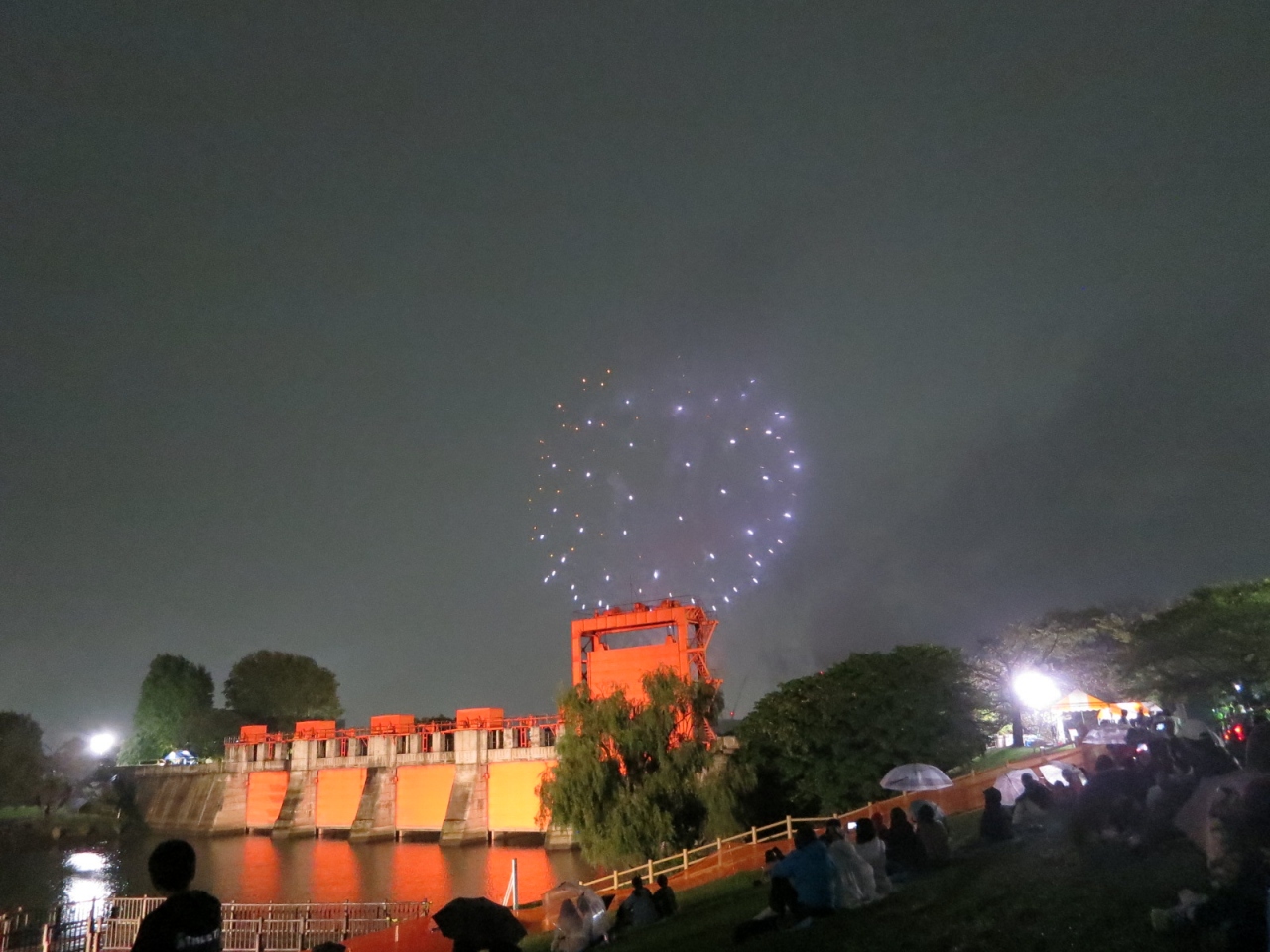 赤羽駅から15分以上かかりますので交通の便がいいとは言えませんが、荒川にアクセントをつける赤い建物(水門)はなかなかインパクトがあります。10月の赤羽花火会に合わせて行きましたが、水門と花火の組み合わせはとてもオシャレでした。