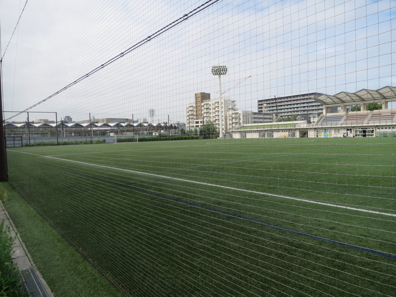 赤羽駅からは歩いて20分くらい、赤羽自然観察公園の隣にあります。何より目立つのは立派なサッカースタジアムで、どうみても近所の普通の人たちのチームが練習試合をしていて、こんな素敵なところでサッカーできるのは幸せだな、と思いました。