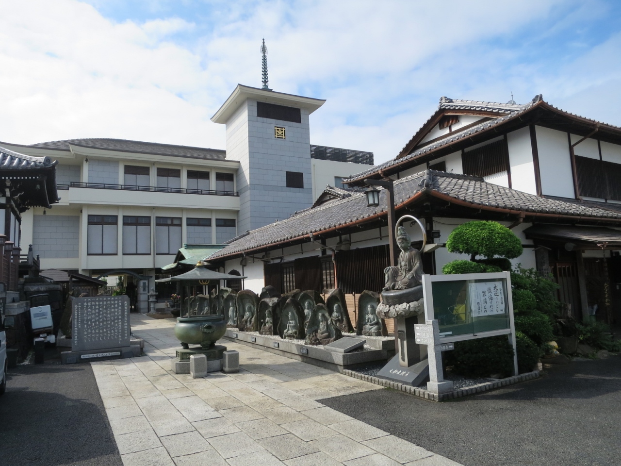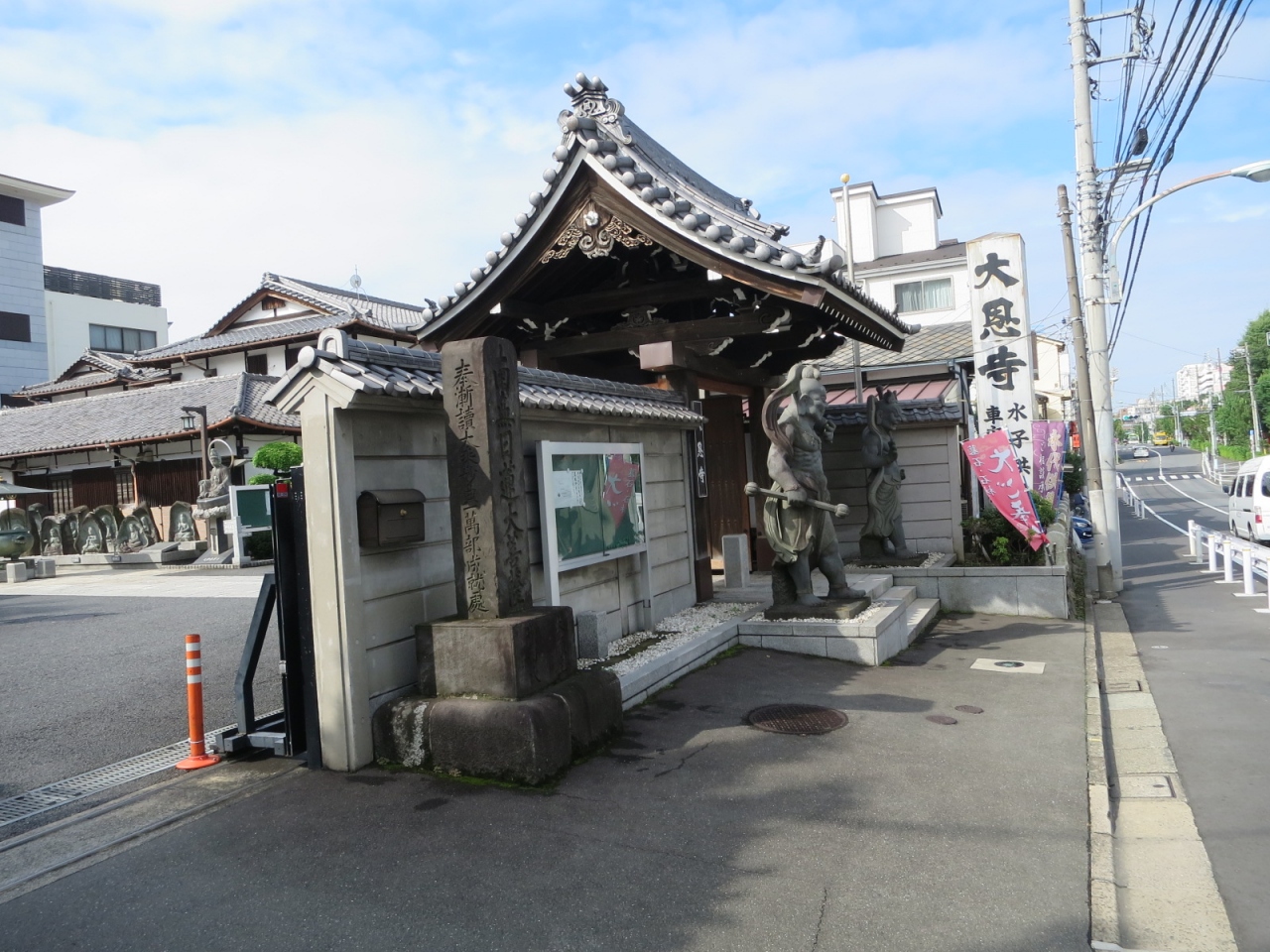赤羽自然観察公園の近くで、赤羽駅からは徒歩20分くらい、善徳寺の隣に並んでいます。門を入ると石仏がたくさんならんでおり、その奥には葬儀関係の立派な建物がありました。門の左右を飾る仁王様もなかなか立派でした。